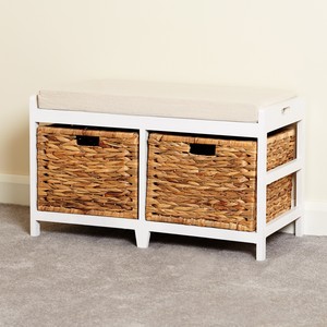 Storage Bench Cushion Seat Seagrass Wicker Bathroom Bedroom