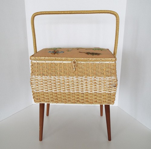 Dritz Sewing Bench Basket Vintage Needlepoint Seat Mid Century